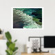 The poster is awash in beautiful aqua, blues, and greens. Looks great framed and matted in my coastal dining room. The print quality is good.