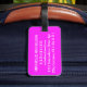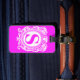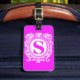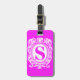 calson heavy font on white ornate label monogrammed pink luggage tag with leather strap