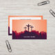 Make a bold statement of faith with this vibrant Christian business card featuring a striking silhouette of the three crosses at Calvary against a warm sunset. This double-sided template offers a professional layout for church contact information, social media, and web addresses. Ideal for pastors, evangelists, and ministry leaders, this design beautifully balances the power of the Gospel with a modern, eye-catching aesthetic.