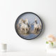 I received this as a birthday gift from my husband to replace a clock that had broken. It was perfect, pictures of my sweet family to see at every hour of the day. The size of the pictures looks nice for the size of the clock and I love looking at it! The only downside is there is no cover for the battery on the back, which makes me nervous having little kids running around the house, but an easy fix with some tape. The printing turned out clear, considering they were all cell phone pictures. Some of them look slightly grainy upon getting close up. But so nice overall!