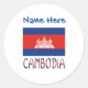These classic round stickers have a Cambodian flag with the word CAMBODIA, below, in the colours of the flag. Above is a place where you can add your name, in blue letters, to personalise, or create a gift. Great for family reunions scrapbooks. Terrific stocking stuffer and party favour, too.