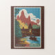 Cambodia Temple Illustration Travel Art Vintage Jigsaw Puzzle