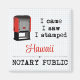 I Came, I Saw, I Stamped. Advertise your Hawaii notary public business with a touch of humour. State pride button makes a thoughtful gift for any notary professional or loan signing agent who provides legal services to the public. This red notary stamp design is presented over a blue graph paper background.