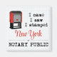 I Came, I Saw, I Stamped. Advertise your New York notary public business with a touch of humor. State pride button makes a thoughtful gift for any notary professional or loan signing agent who provides legal services to the public. This red notary stamp design is presented over a blue graph paper background.