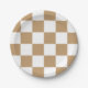Paper plate with a camel brown and white chequered pattern. Perfect for any gathering.