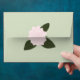 The inside of this sage green wedding rsvp envelope is filled with tone on tone stripes in varying shades of sage green. A big, soft pink, watercolor Camellia blossom with dark green leaves is placed partly on the back flap and partly on the bottom portion of the back giving the appearance of a seal. From my original digitally created image.