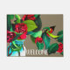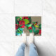 A floral arty welcome mat featuring Camellia flowers original watercolor artwork by artist Sacha Grossel against a, earthy customisable coloured background with welcome sign. A homely, sweet welcome door mat perfect for your house.