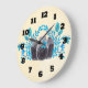 Camera With Azure Blue Leaves And Butterflies Large Clock
