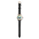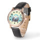 A watch with a cute watercolor design for shutterbugs. A black camera surrounded by azure blue leaves and butterflies in a pretty decorative arrangement.. Big bold clock numbers in black make this watch easy to read. Set on a cream coloured background.