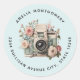 Camera with Flowers Retro Pastel Image - Address Classic Round Sticker
