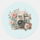 Camera with Flowers Retro Pastel Image Classic Round Sticker