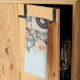 Kitchen towel with a vintage styled camera decorated with flowers. Pastel colors of pink, cream and green.