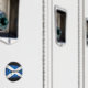 Cameron family / clan name in grunge style font on Scotland's St. Andrews Cross flag