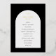 Modern wedding program featuring your monogram along with your order of ceremony and wedding party inside of an off white coloured arch over a black background. Your monogram and names are in real foil and all text on the front may be changed to foil in the design editing tool. This simple yet elegant design in classic black and white with foil is great for any style of wedding.