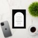Modern wedding invitation featuring your monogram along with your details inside of an off white coloured arch over a black background. Your monogram and names are in real foil and all text on the front may be changed to foil in the design editing tool. This simple yet elegant design in classic black and white with foil is great for any style of wedding.