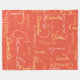 An orange red background colour... pale yellow and white handwritten font styles repeating all over the fabric... a nice and personalised idea for any girl