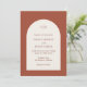 Modern wedding invitation featuring your monogram along with your details inside of a cream coloured arch over a rust background. This simple yet elegant design with earthy desert colours is great for a boho style wedding in summer or fall.