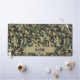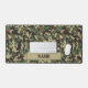 Camo camouflage pattern in beige, medium and dark brown and green. Personalise with your name or initials in matching stencil font.