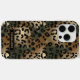 Customize this gold foil camo leopard print iPhone 15 pro max case with your your name in a trendy modern CAP font in gold on black. It's so chic!