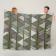 This large fleece blanket has a mid-century modern design of overlapping triangles running horizontally in camo colors.