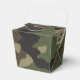 Take out-style favour box with an image of a brown, green and black burlap with a camouflage pattern. See the entire Patriotic 40s Favour Box collection in the PARTY FAVORS section.