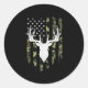 Camouflage American Flag Deer Hunting Classic Round Sticker