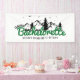 Make your camp bachelorette party stand out with this banner featuring mountains, pine trees, and rustic charm. This outdoor-inspired design adds a fun, nature-themed touch to your celebration. Personalise it with the bride’s name for a unique detail that enhances the event décor.