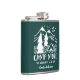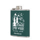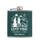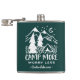 Commemorate a special camping trip or outdoor adventure with this cool custom flask featuring the quote "camp more, worry less." Cute camping saying appears in distressed white lettering beneath a hand drawn illustration of a camping tent set in a pine forest with a crescent moon rising over snow-capped mountain peaks. The perfect way to commemorate a special trip, or for anyone who loves camping, you can customise this flask with your choice of text beneath the design. Add your camping destination, the year, or a family name for a special touch.