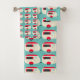 The cutest camp theme bath towel set to take camping or for really cute bathroom decor. The blue background will bring a nice pop of colour to your room. Pairs well with matching accessories from this shop.