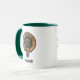 Campbell crest badge surrounded by a strap and buckle over tartan background. Custom text on both sides.