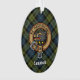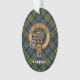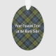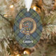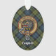 Campbell crest badge surrounded by a strap and buckle over tartan background. Custom text on both sides.
