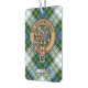 Campbell crest badge surrounded by a strap and buckle over dress tartan background. Custom text on both sides.