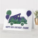 Create a personalised birthday card. This folded greeting card is ready to be personalised with your own message on the front and the inside and features an illustration of a camper fan with a popup tent on the roof and is illustrated to look like a moonlit night in the forest with a full moon in a star-filled indigo sky shining down on a grove of evergreen trees.