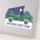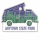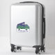 Add the name of your favourite camping spot to create your own custom souvenir sticker or add any text you like to this contour cut sticker that's perfect for decorating your car or gear. This sticker features an illustration of a camper fan with a popup tent on the roof and is illustrated to look like a moonlit night in the forest with a full moon in a star-filled indigo sky shining down on a grove of evergreen trees. Your own custom text appears below in blue lettering.