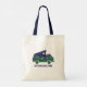 Create your own custom souvenir or a personalised going away gift when you personalise this tote bag with your own message. This tote features an illustration of a camper fan with a popup tent on the roof and is illustrated to look like a moonlit night in the forest with a full moon in a star-filled indigo sky shining down on a grove of evergreen trees. Your own custom text appears below in blue lettering. The graphic and text appear on both sides of the bag.