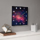 A cool abstract photo of a campfire at night. Bright pink and red embers can be seen blowing around.