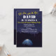 Cute invitation for camping birthday party featuring tent, mountains and night sky with stars.