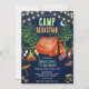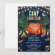All text is fully customizable — personalize the camp name, birthday child's name, age, date, time, location, and special instructions like "Bring your sleeping bag & PJs." Printed on premium card stock for a polished finish.