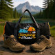 This black duffle bag is perfect for any camping enthusiast, featuring a charming design of a camper van parked next to a tent and a crackling campfire, with mountains in the background. The bold text "Camping Crew" makes it an ideal accessory for your next outdoor adventure or road trip. Edit colour of the bag caps and body in the Design tool to your favored colours.