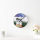 Crafted with care, this clock features a serene forest scene that captures the essence of camping in the wilderness.