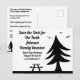 Send postcard invitations to your family members to announce your family reunion inviting them to save the date. Templates are setup to allow you to put in your own information. A black silhouette of a campground with pine trees and picnic tables and birds is featured on both sides of the postcard.