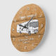 This round clock features a generic Class A RV with a rustic wood background. You can change the family name to your own name so you can always know that this is your "happy camper" home.
