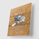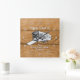 This square clock features a generic toy haulier RV with a rustic wood background. You can change the family name to your own name so you can always know that this is your "happy camper" home.
