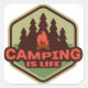 This design is a badge style illustration with gardening elements and a caption that says "Camping Is Life." This design is perfect for hardcore camping enthusiasts who can't get enough of their favourite passion. If you're an outdoor enthusiast and camper, this are the camping stickers for you.