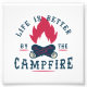 This camping inspired quote can be transferred to a wide range of gifts and accessories as shown. To add your own quote, change or delete the image template shown. To add text use the CUSTOMIZE/PERSONALIZE tab. The quote here features a log fire type graphic and the words 'Life is better by the camp fire'.