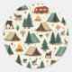 It's a sticker with a picture of a tree, a tent, and a campfire.