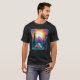 I give wanted to give this a 4 instead of a 5 because these Basic DARK T0shirts run unexpectedly SLIM or Narrow. Which is great if you do not have a potbelly, but I have a paunch. It isn't the shirt's fault that I've got a beer belly. The design and shirt itself is a quality cotton shirt. The color is more of a deep purple, but still a very pretty color. The Basic DARK T-shirts run a bit SLIMMER than the Basic Ts. The neck is a fraction narrower (or seems to be narrower) also. I'm a paunchy middle-aged woman and my neck is 12 inches (31cm) thick and the neckline fell about the same as in the photo of the man, and I had the desire to tug it a bit. So if you're a thick necked man or like loose shirts, be aware these are slimmer shirts. Once I get rid of my lockdown paunch it'll look great. The shirt washed well in cold water with no apparent bleeding. We don't have a dryer, so it hung dry. Did not shrink. Love the colors and the design. The design looks smaller on my shirt than it does on the model on-line. But still, it looks good on the shirt. The printing looks as it does on the model, just the size seems fractionally smaller. Washed garment in cold water, hung dry and design appeared unaffected.