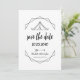 Simple line drawing art of a tent, arrow and geometric lines. Perfect save the date for a outdoor summer camp themed wedding. Congratulations to the happy couple.