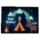 This Camping Happy Birthday gift bag features a tent, campfire, an owl and moose all under a stary sky with a full moon and mountains in the background. -by Mountain Madness