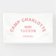 Camp theme bachelorette, personalised pink crest banner. Personalise with bride's name, the year of the camp theme bachelorette party/trip and location. The perfect backdrop / banner for a camp theme bachelorette party. Designed to match our Camp Bachelorette Green & Pink Collection.